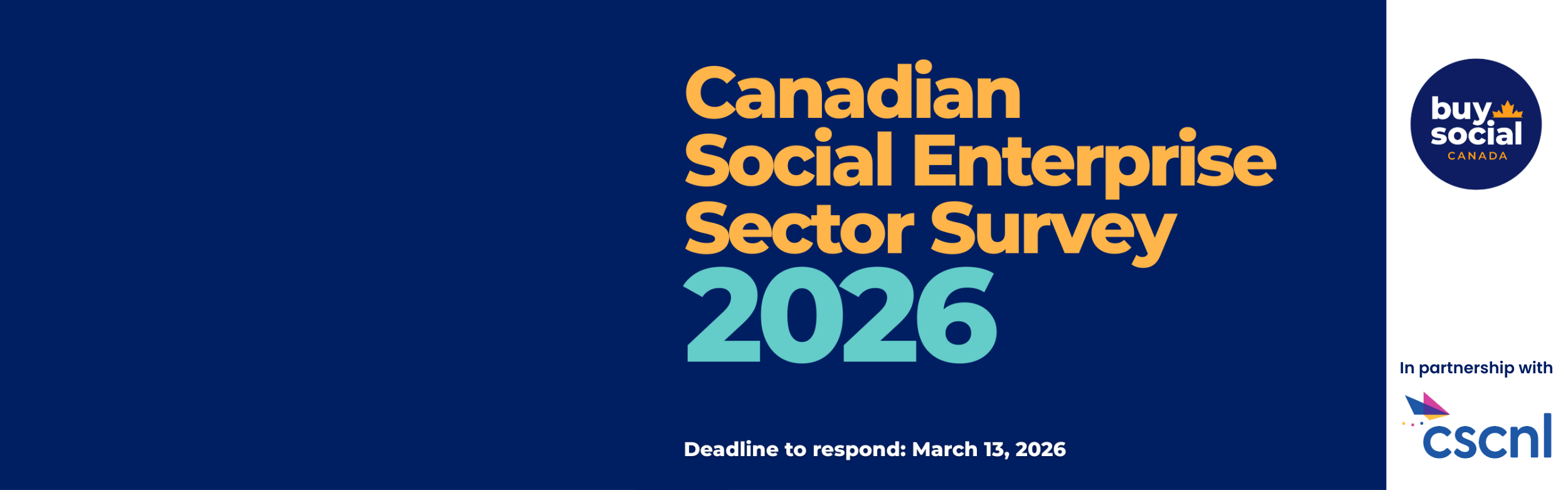 The Canadian Social Enterprise Sector Survey 2026 is led by Buy Social Canada in partnership with CSCNL and 13 other sector organizations across Canada.